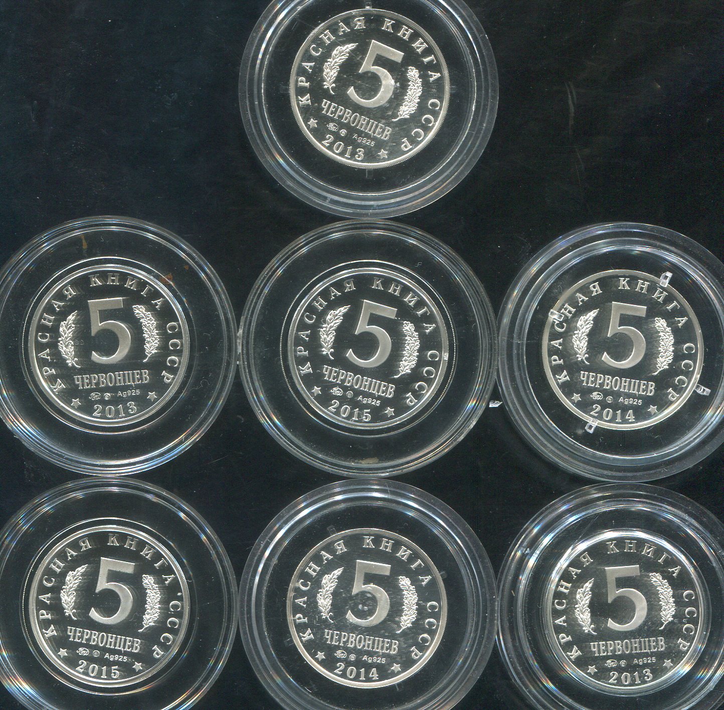 Набор из 7 жетонов 5 червонцев "Красная книга"