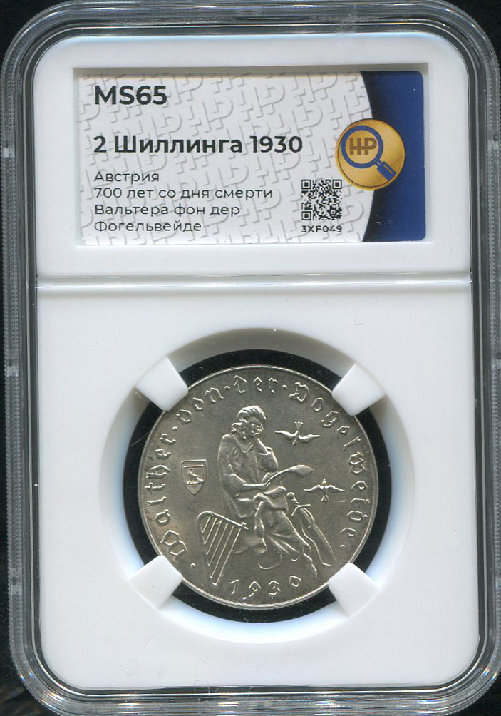 2 шиллинга 1930 "700 лет со дня смерти Вальтера фон дер Фогельвейде" (Австрия) (в слабе)