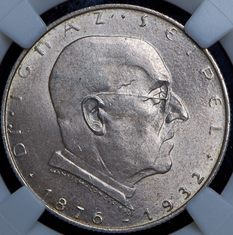 2 шиллинга 1933 "Памяти Игнаца Зейпеля" (Австрия) (в слабе)