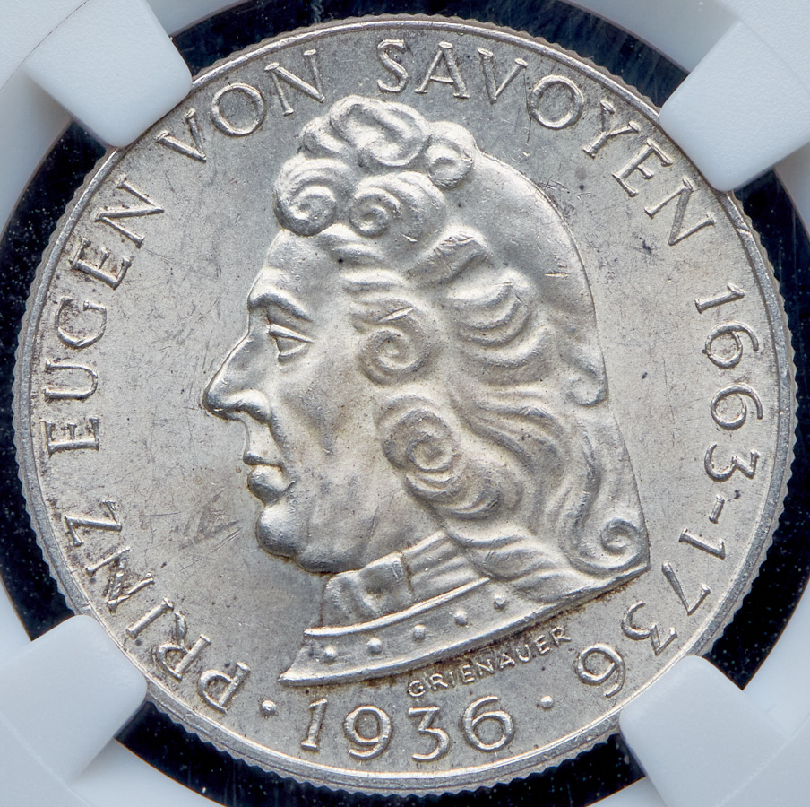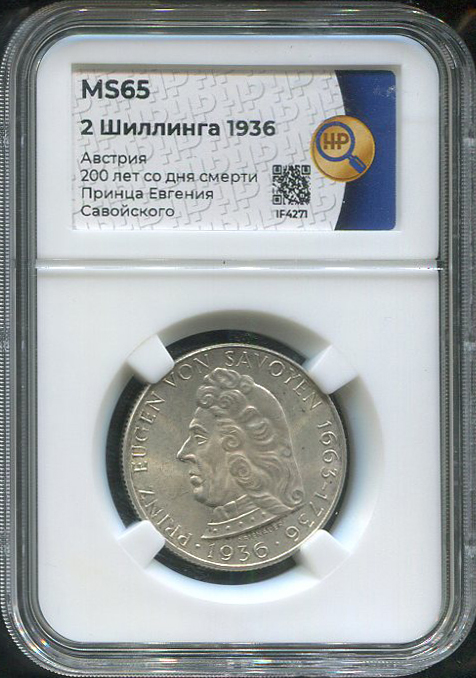 2 шиллинга 1936 "200 лет со дня смерти Принца Евгения Савойского" (Австрия) (в слабе)