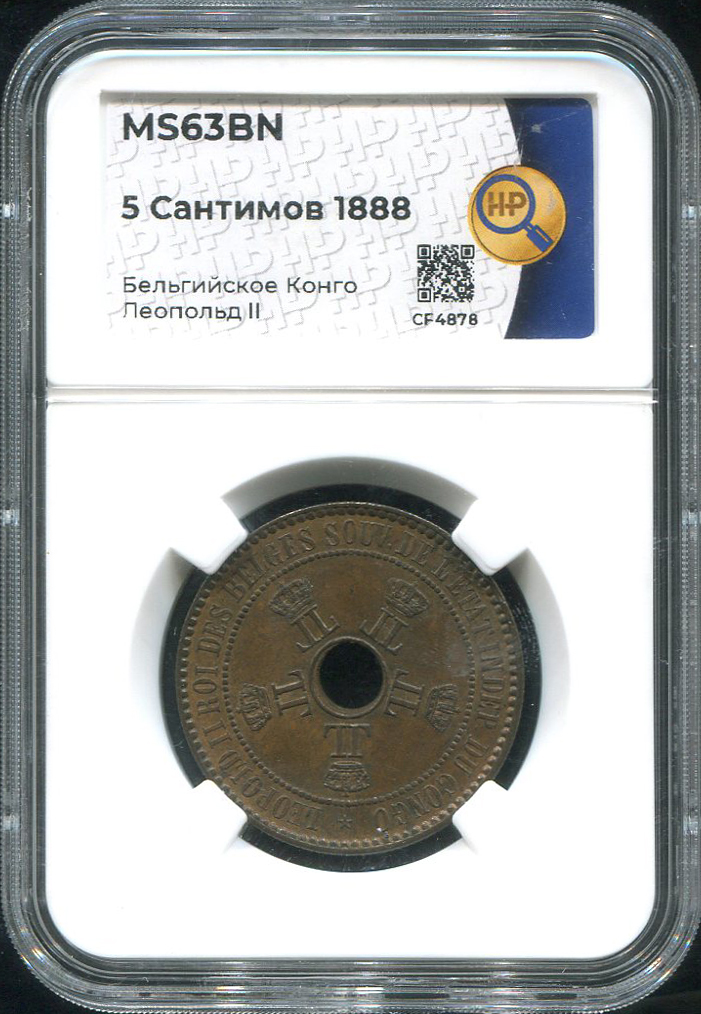 5 сантимов 1888 (Бельгийское Конго) (в слабе)