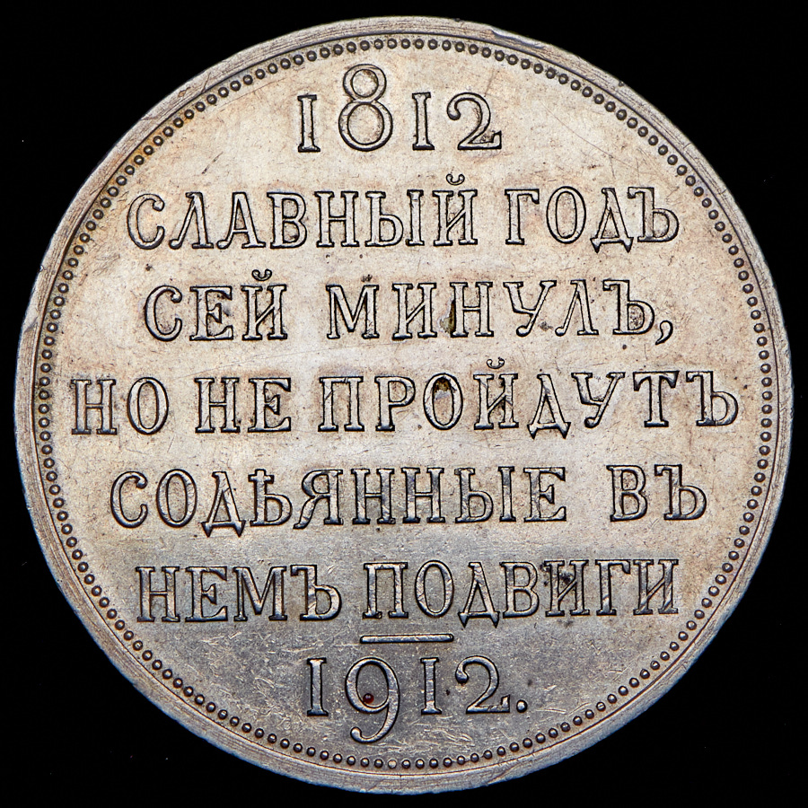 Чеканена в честь 100-летия победы в Отечественной войне 1812 года.