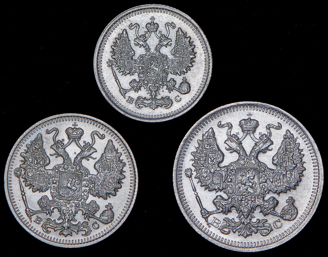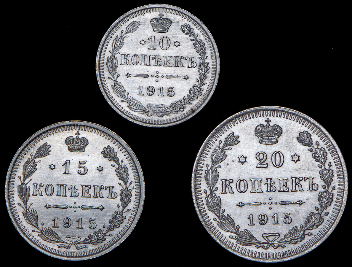 Набор из 3 сер. монет 10, 15, 20 копеек 1915 ВС