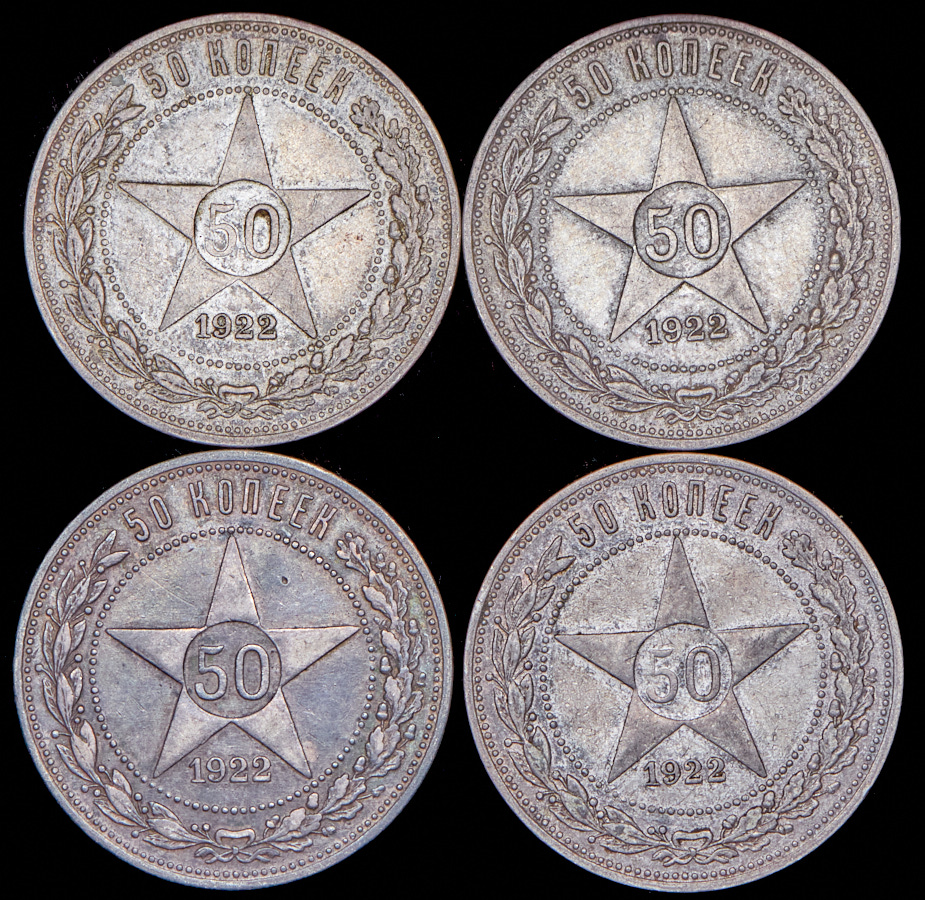 Набор из 4 сер. монет 50 копеек 1922 (ПЛ)