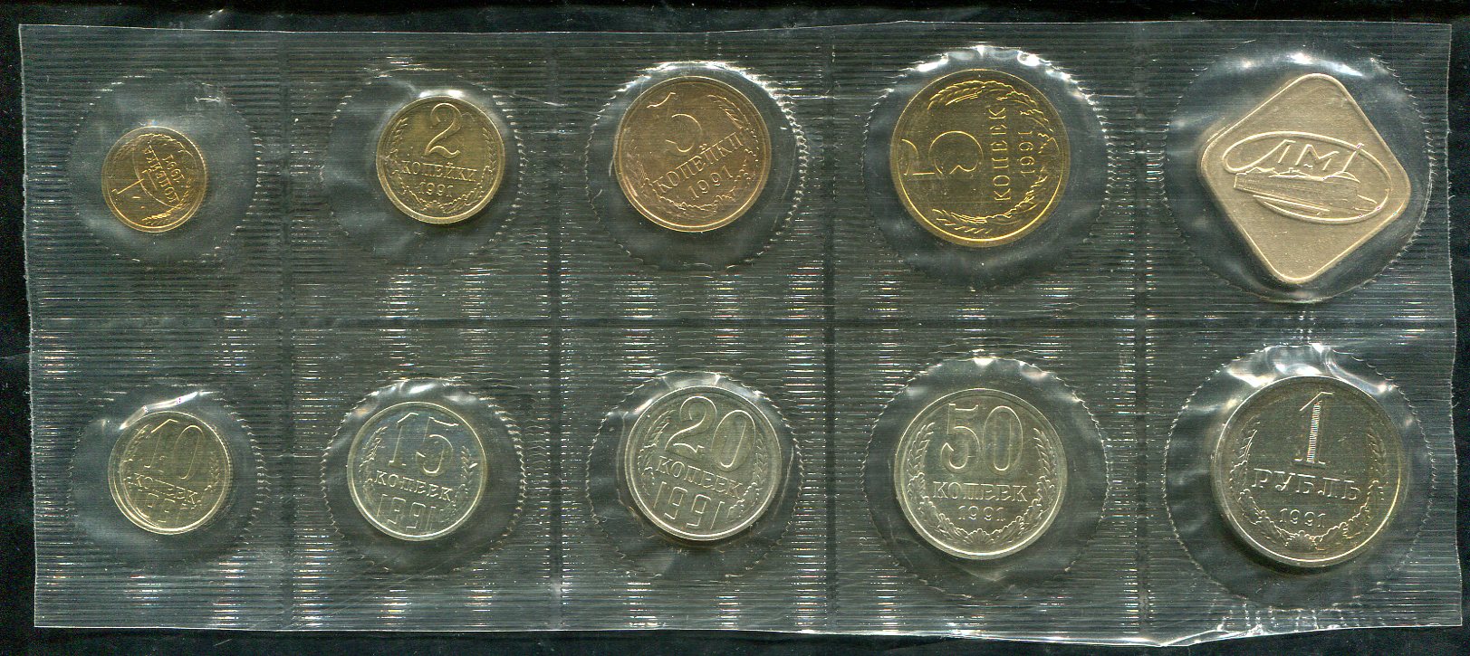 Годовой набор монет СССР 1991 (в мягк. запайке) ЛМД