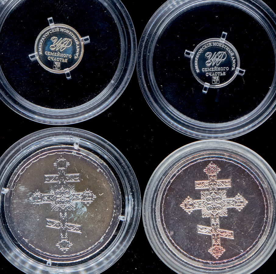 3) Жетоны "Православные праздники России" (2 шт.). Императорский монетный двор. Диаметр: 33 мм. Серебро 999. Вес: 15,5 гр.