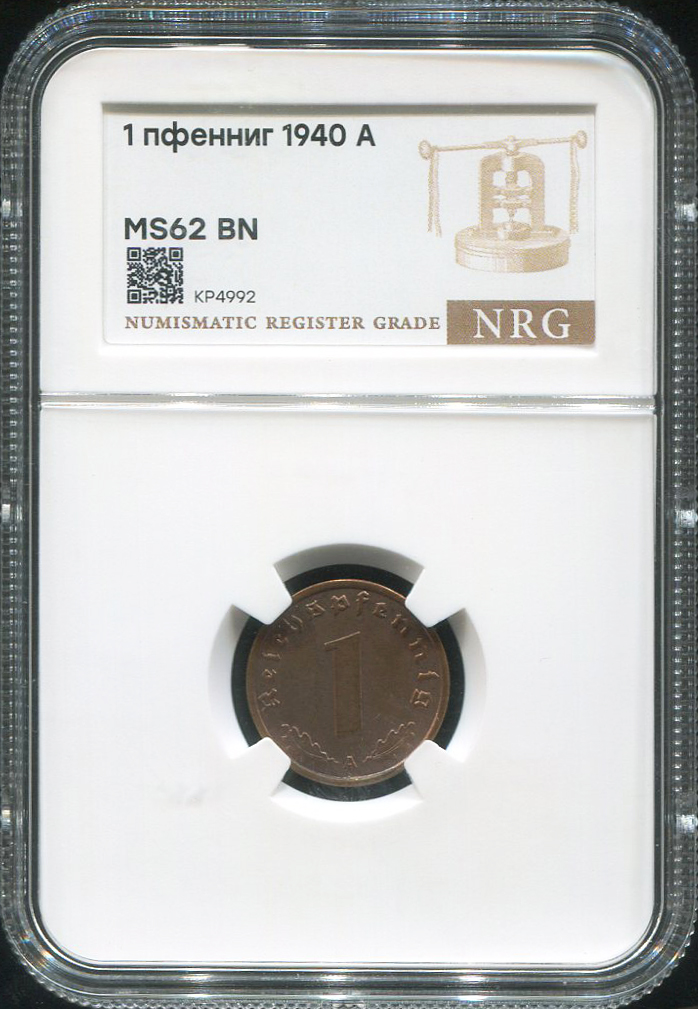 1 пфеннинг 1940 (Германия) (в слабе) А
