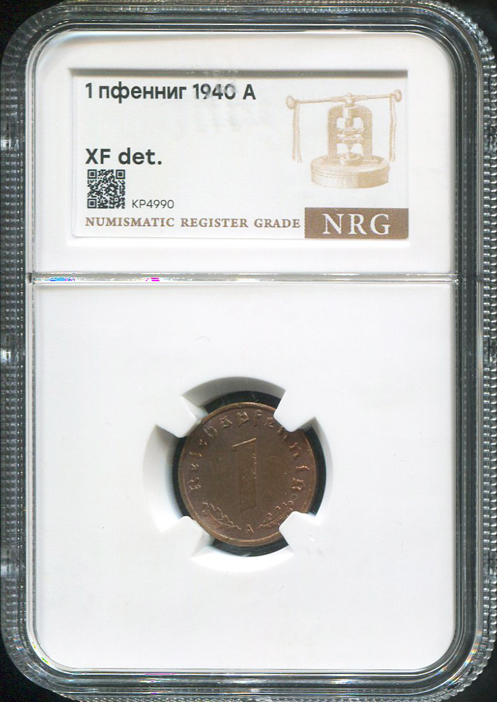 1 пфеннинг 1940 (Германия) (в слабе) А