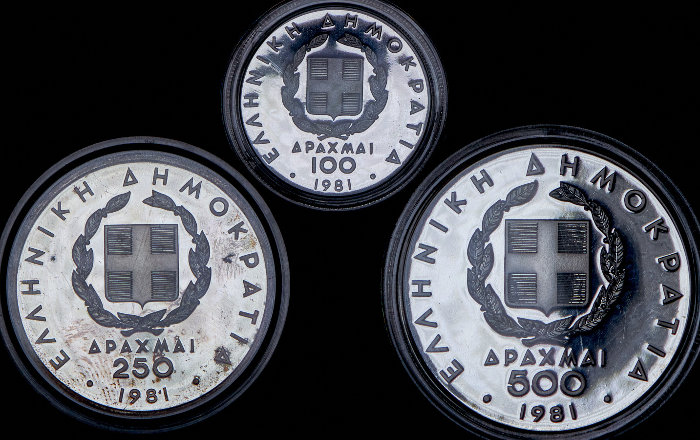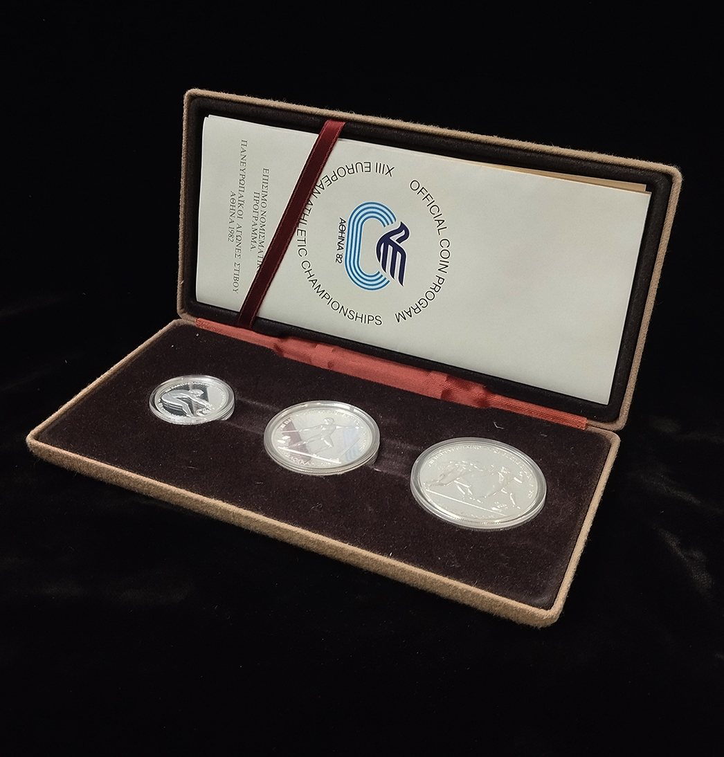 Набор из 3 монет 1981 "Чемпионат Европы по легкой атлетике в Афинах в 1982 году" (Греция) (в п/у)