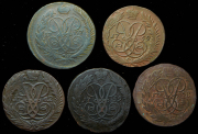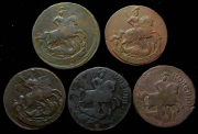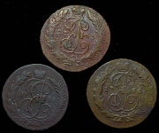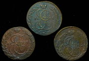 Набор из 3 медных монет 5 копеек 1782-1788 КМ