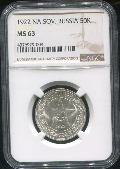 50 копеек 1922 (в слабе) (ПЛ)