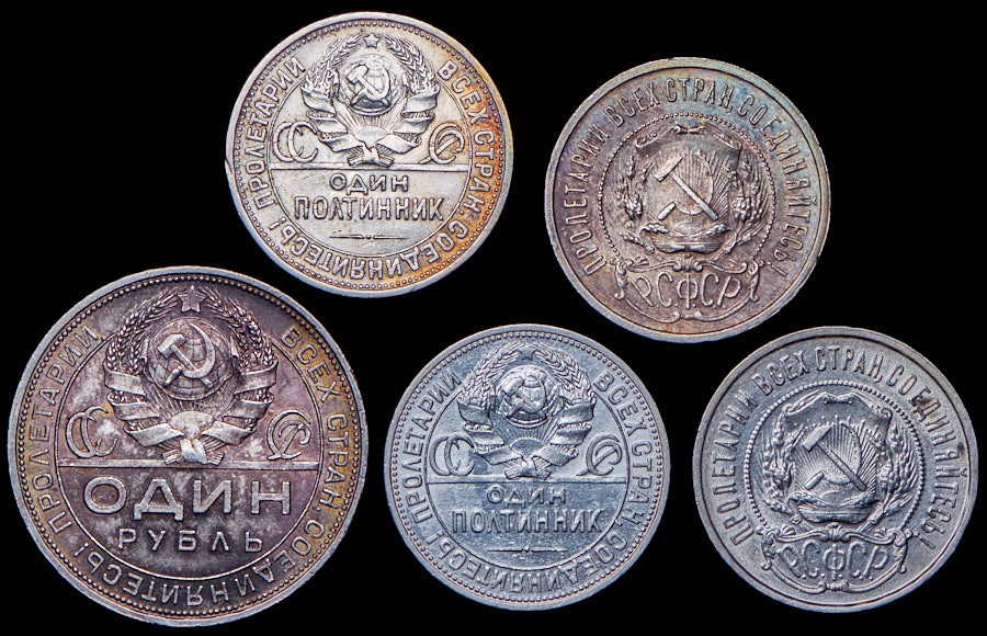 Набор из 5 сер. монет (РСФСР, СССР)