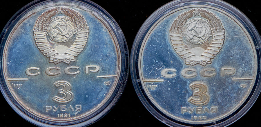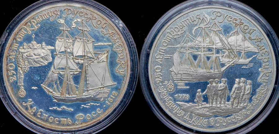 Набор из 2 сер. монет 3 рубля "250 лет открытия Русской Америки" ЛМД
