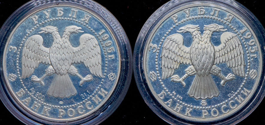 3 рубля 1995 года "Исследование Русской Арктики. Великая северная экспедиция"