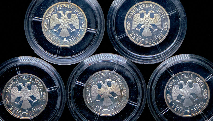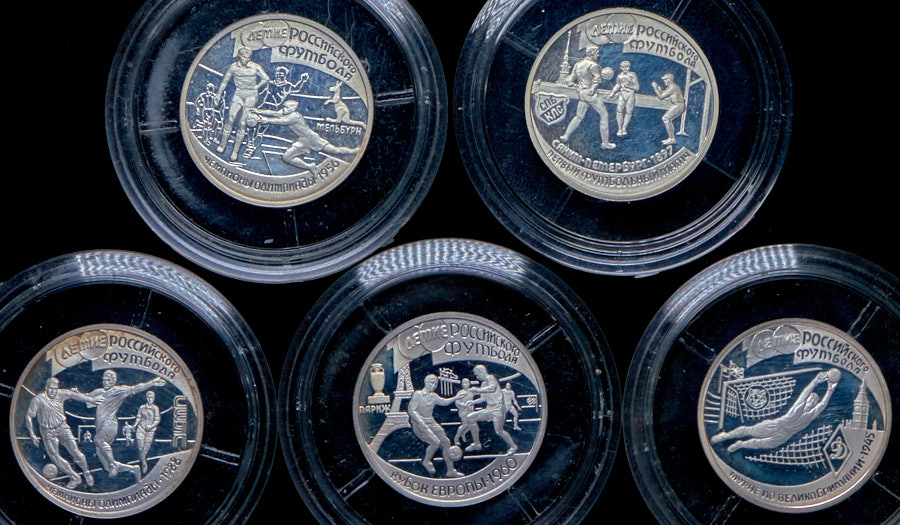 Набор из 5 сер. монет Рубль 1997 "100-летие Российского футбола" ЛМД