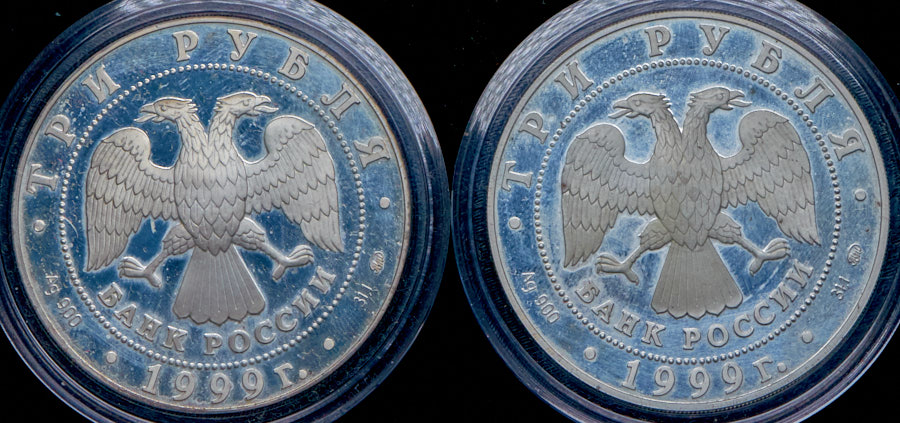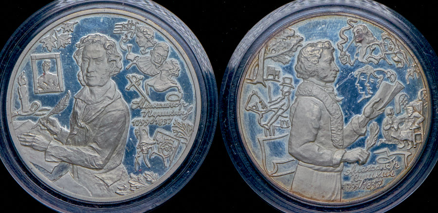 Набор из 2 сер. монет 3 рубля 1999 "Пушкин А.С., 200 лет со дня рождения" ММД
