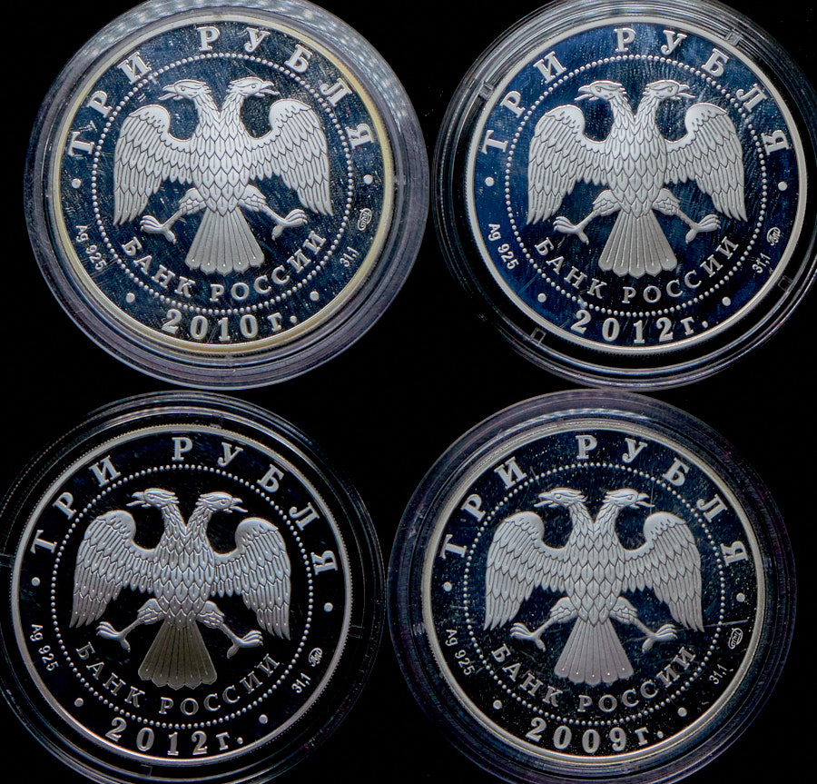 Набор из 9 сер. монет 3 рубля 2008-2012 "ЕврАзЭС"