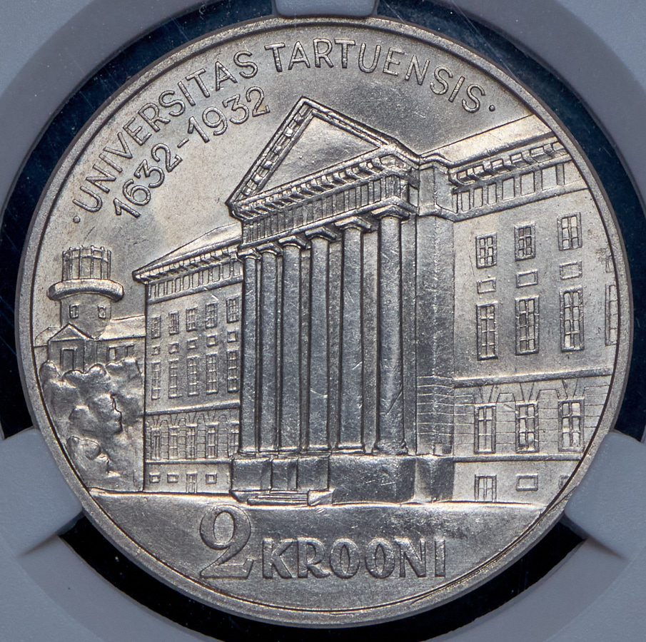 2 кроны 1932 "300-летие Университета Тарту" (Эстония) (в слабе)