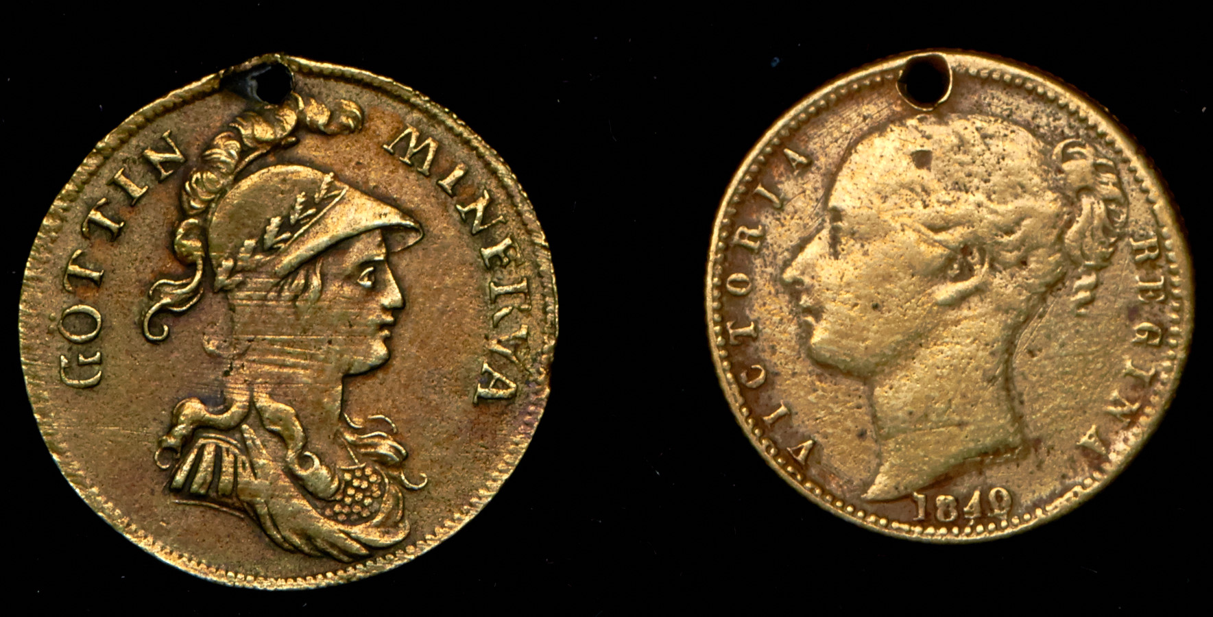 - Жетон Королева Виктория 1840. На обороте – To Hanover 1837. Англия. Бронза. Диаметр 22 мм
