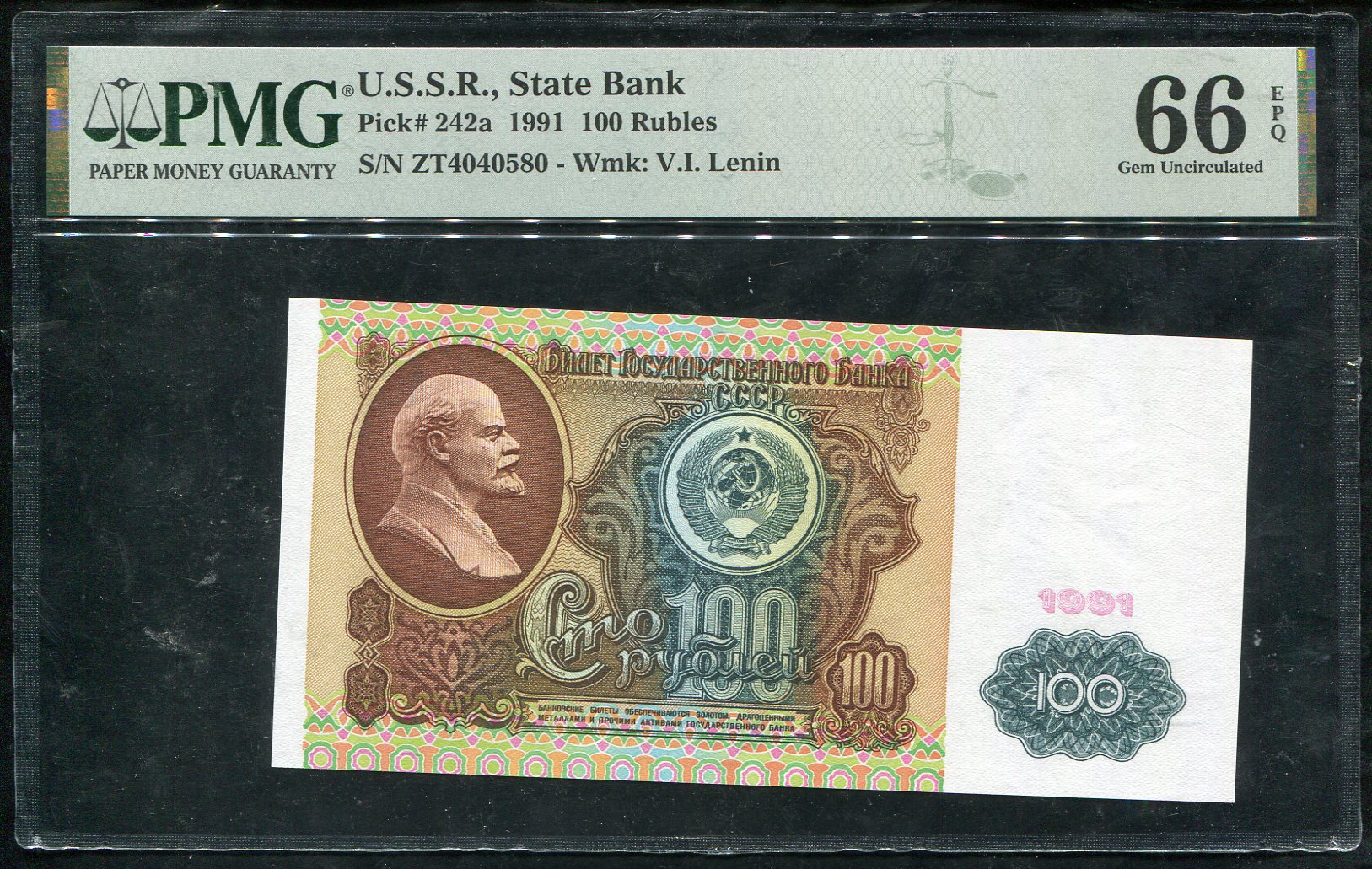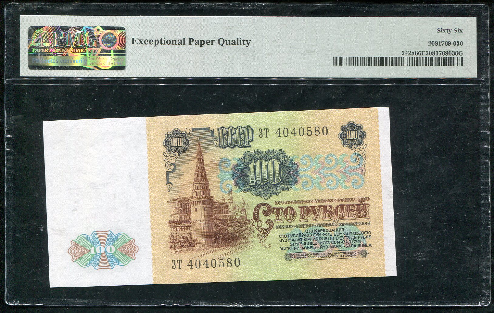 Билет Государственного Банка СССР 100 рублей образца 1991 года, Первый выпуск. Водяные знаки - Ленин. ЗТ 4040580.