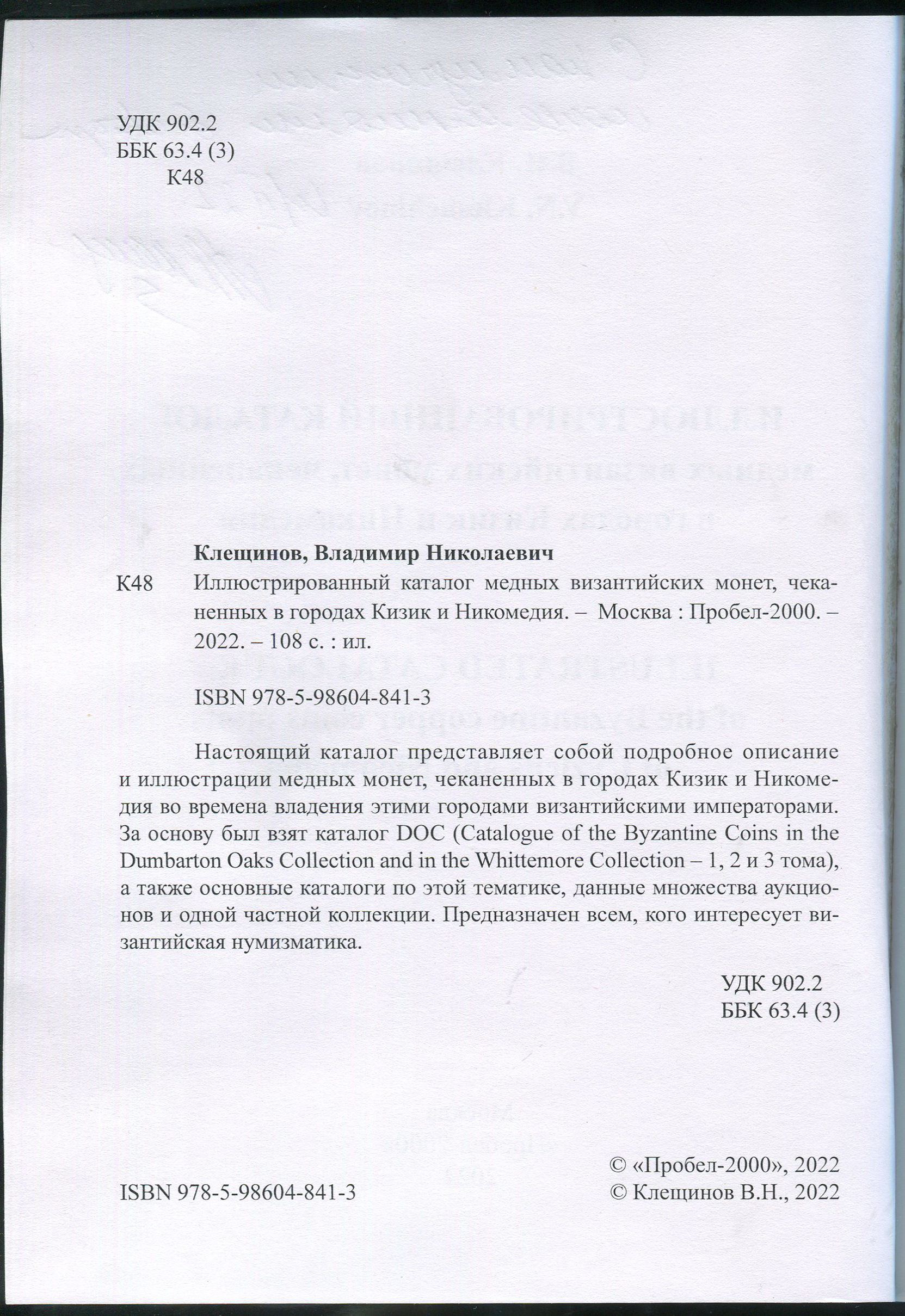 Книга Клещинов В.Н. "Иллюстрированный каталог медных византийских монет, чеканенных в городах Кизик и Никомедия" 2022