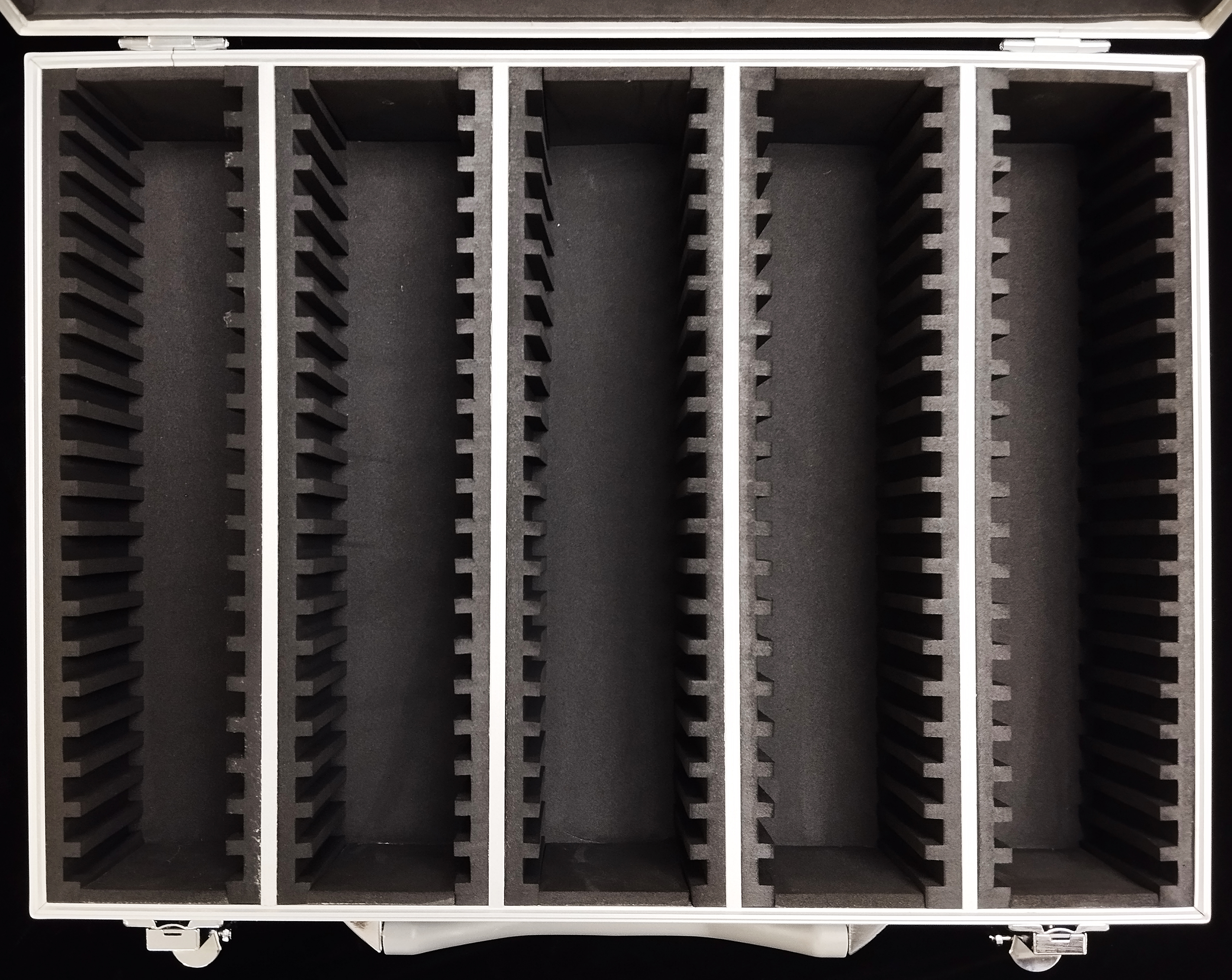 Прочный и удобный кейс, рассчитанный на хранение до 100 слабов, с двумя запирающими замками.