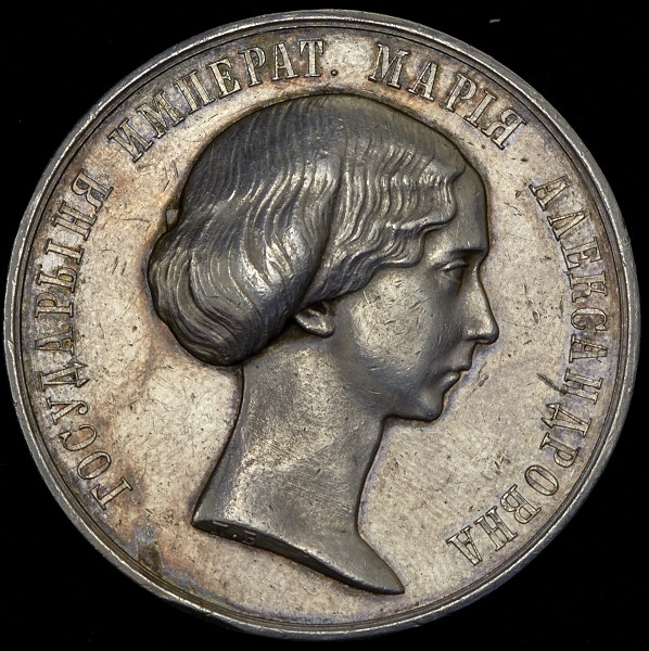 На аверсе изображен портрет императрицы Марии Александровны, супруги Александра II.