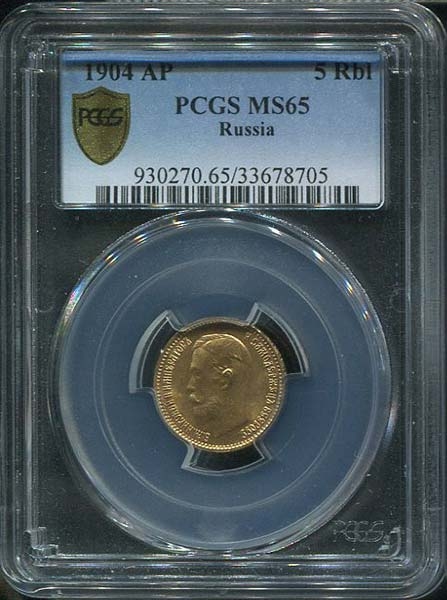 5 рублей 1904 (в слабе) (АР)