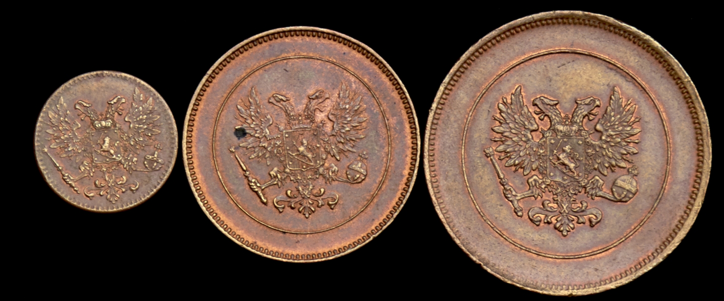 В набор вошли: 1) 1 пенни 1917. 2) 5 пенни 1917. 3) 10 пенни 1917.