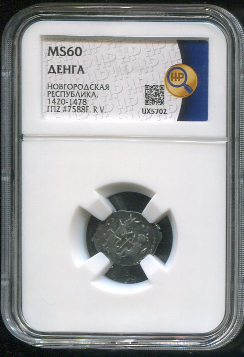 В набор вошли 2 монеты Деньга. Одна из них в слабе ННР. Вес монеты без слаба 0,78 г.