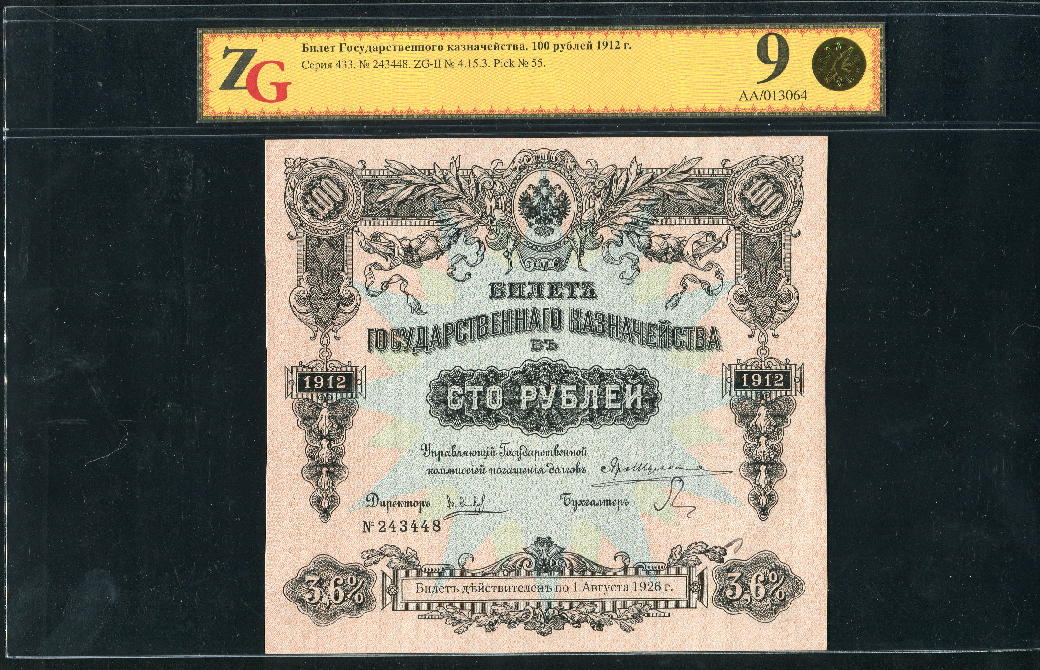 Билет Государственного казначейства 100 рублей 1912 (в слабе)