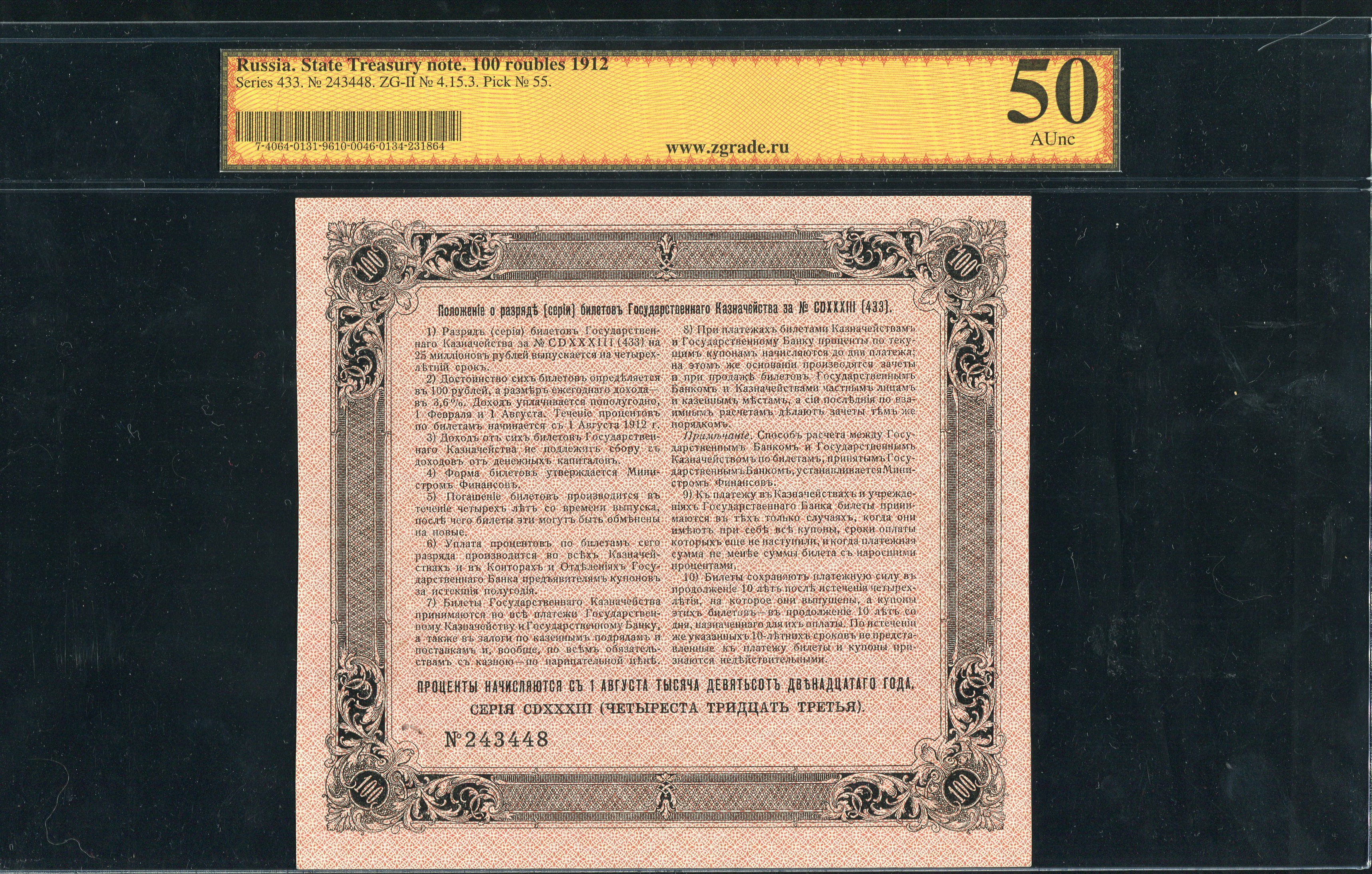 С подписью Управляющего Государственной комиссией погашения долгов А.А.Шумахера. Серия 433. № 243448.