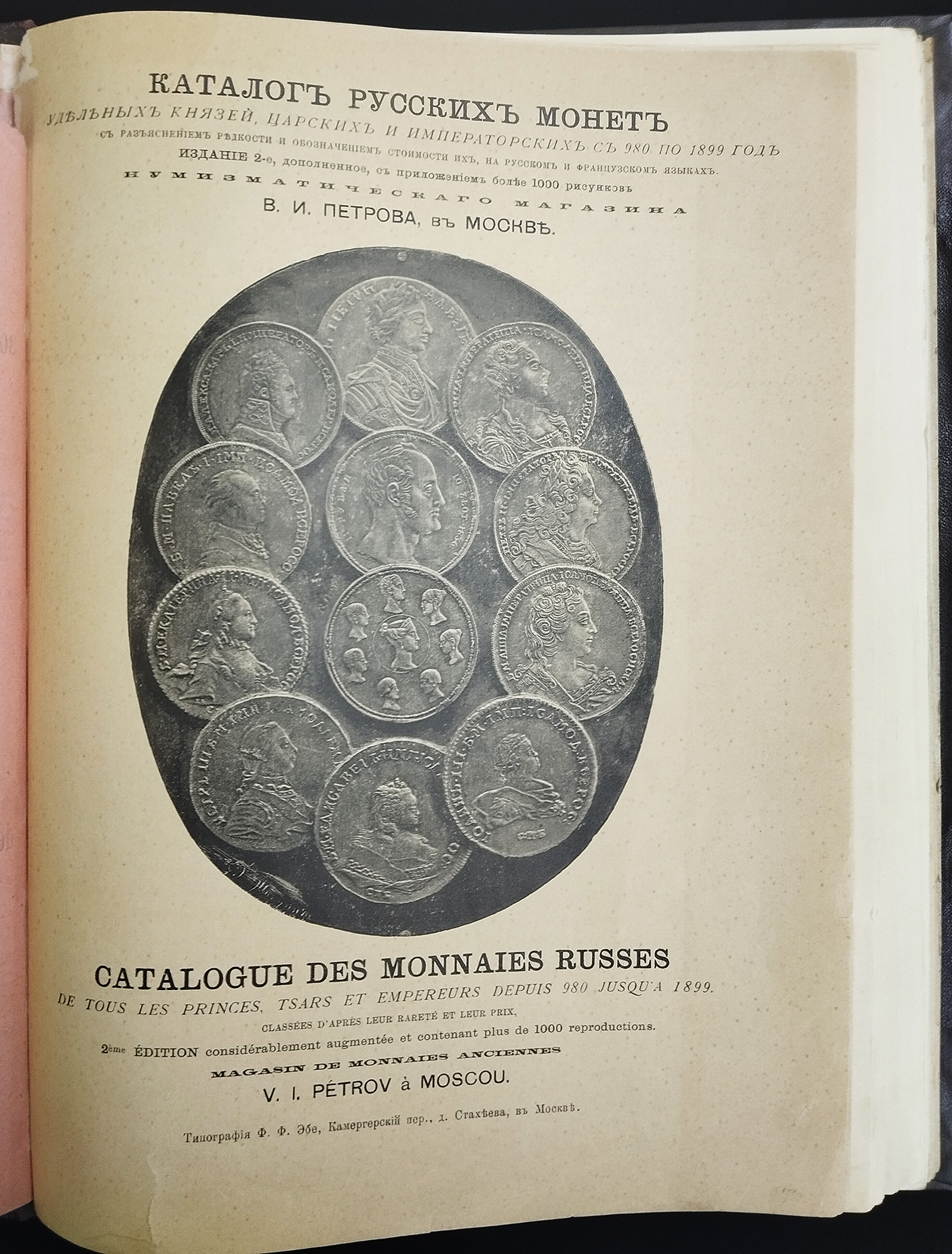 Книга Петров В.И. "Каталог русских монет удельных князей, царских и императорских с 980 по 1899 год" 1899
