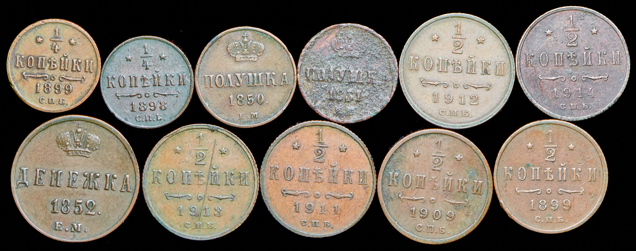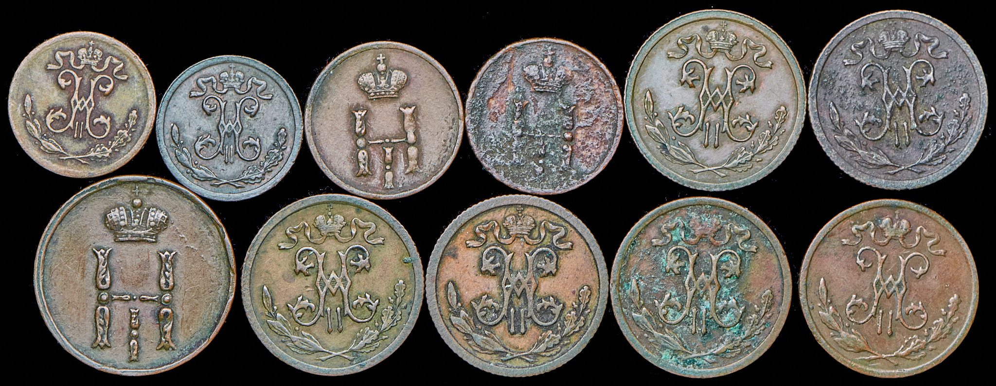 Набор из 11 медных монет