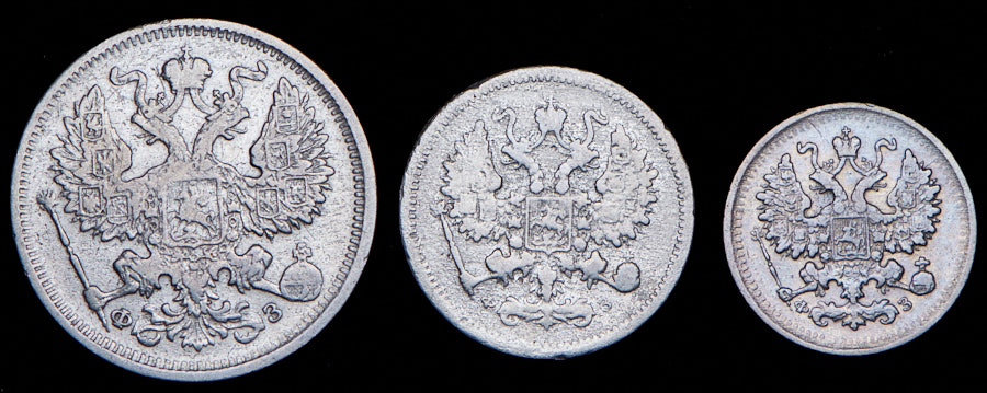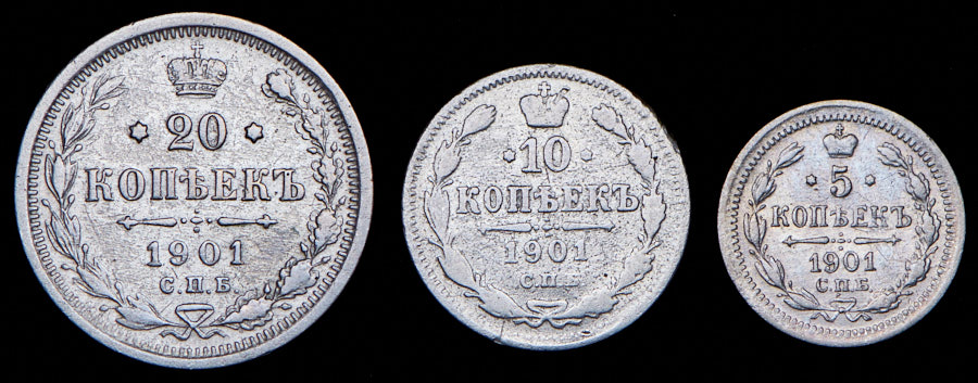 Набор из 3 сер. монет 5, 10, 20 копеек 1901 СПБ-ФЗ