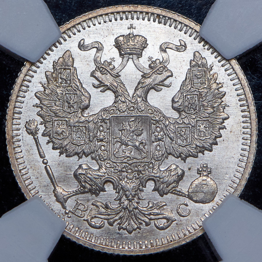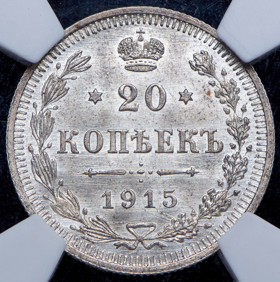 "После начала первой мировой войны, в которой противником России была германия, русской столице в 1915 г. вместо "немецкого" названия - Санкт-Петербург - было присвоено русское - Петроград. В связи с этим со всех русских монет (разменных серебряных и медных) было снято обозначение Петербургского монетного двора - "СПБ" (т.е. "Санкт-Петербург"), однако другого обозначения до 1917 г. так и не было установлено."