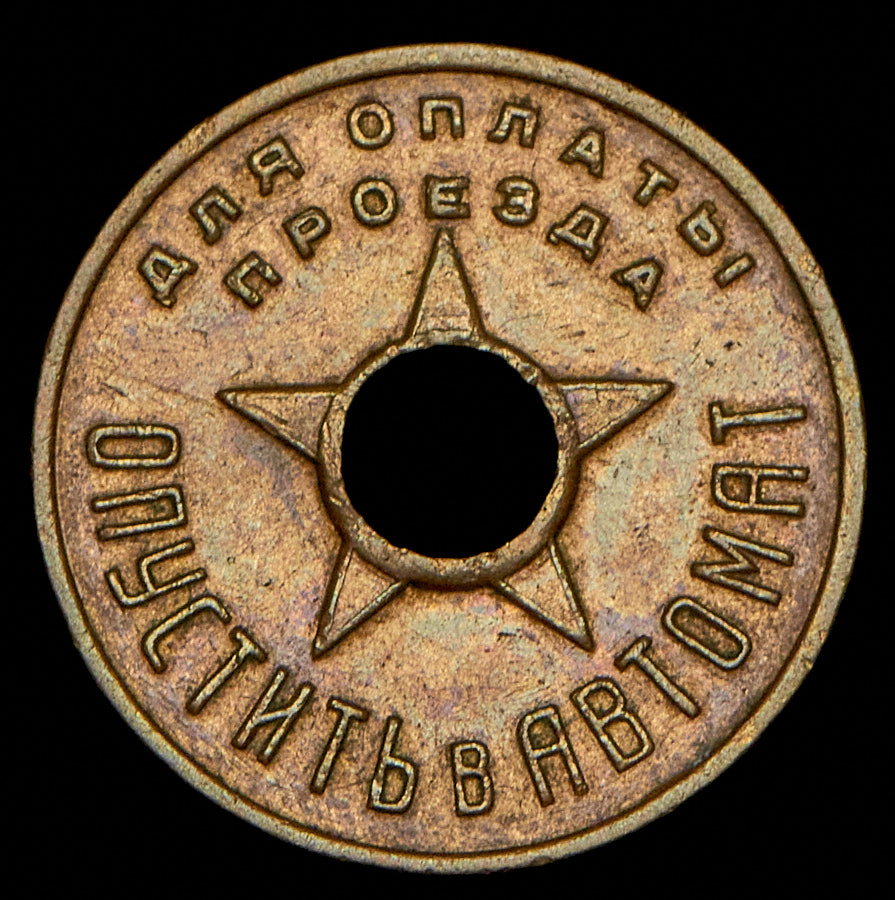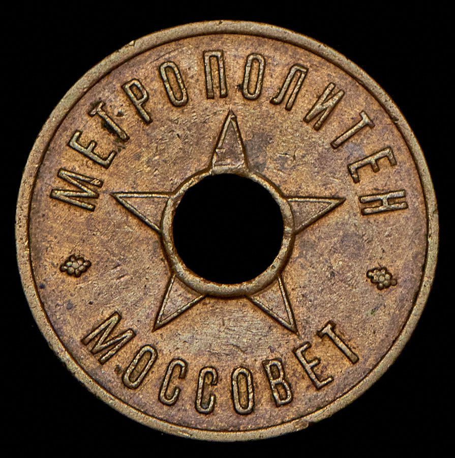 Первый жетон метрополитена в СССР выработали в 1935 году в связи с предстоящим вводом в эксплуатацию первого в стране московского метро имени Л. М. Кагановича. В марте того года коллектив трудящихся Ленинградского монетного двора получил срочное правительственное задание: отчеканить 3 миллиона экземпляров жетонов для оплаты проезда пассажиров. Чтобы жетоны метро нельзя было спутать с монетами, решено было изготавливать их с круглыми отверстиями в центре кружка. Оборудование завода не было приспособлено к выработке изделий такого рода. Сначала приходилось штамповать изображение на кружке, а затем выполнять вторую операцию — прокалывать отверстие в отштампованном жетоне. Поэтому на 20 марта было изготовлено всего 150 тысяч таких жетонов, т. е. двадцатая часть заказа. Заместитель главного механика предприятия К.К. Абарович предложил штамп двойного действия, который делал жетоны одновременно с прокалыванием отверстий.