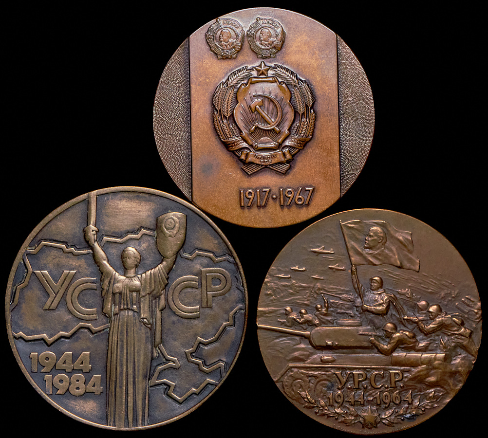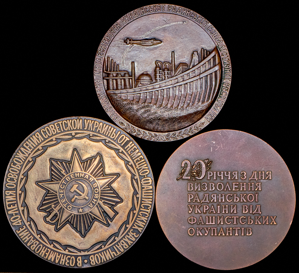 1. Медаль в память 20-летия освобождения Советской Украины от фашистских оккупантов. Ленинградский монетный двор., 1964 год. Томпак. Диаметр 65 мм. Шкурко, Салыков# 341.