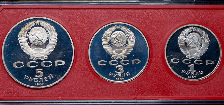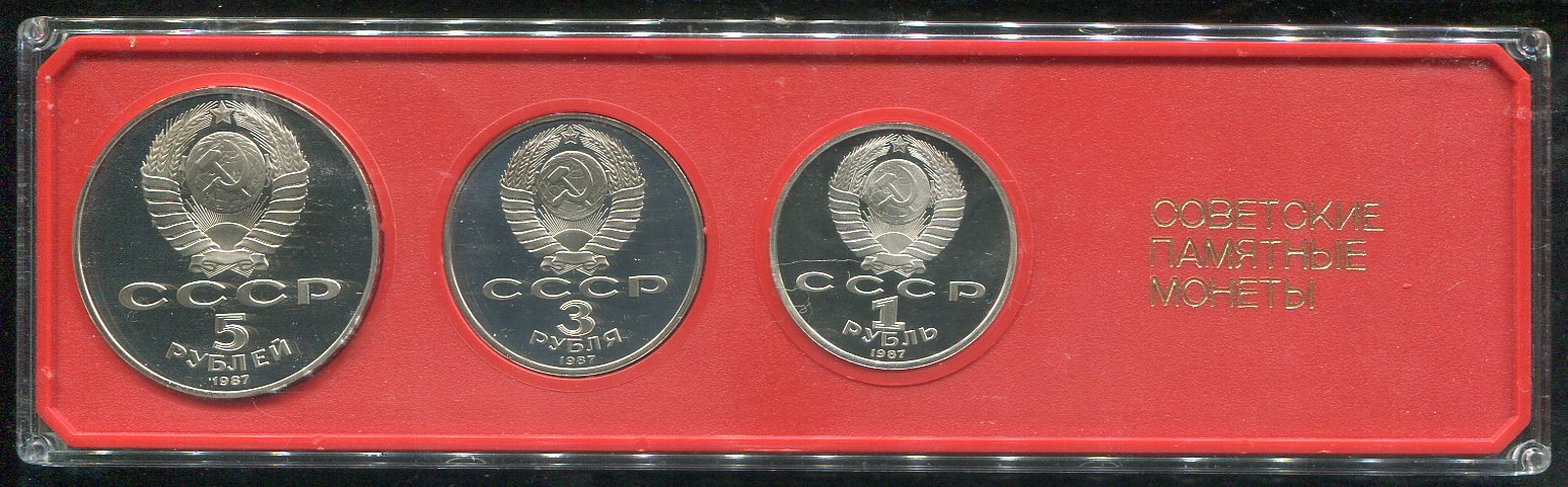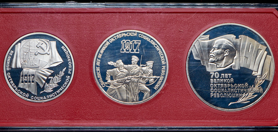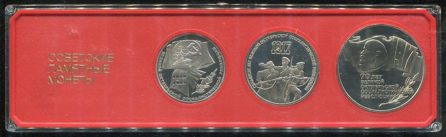 Набор из 3 памятных монет 1987 "70 лет Революции" (в п/у)