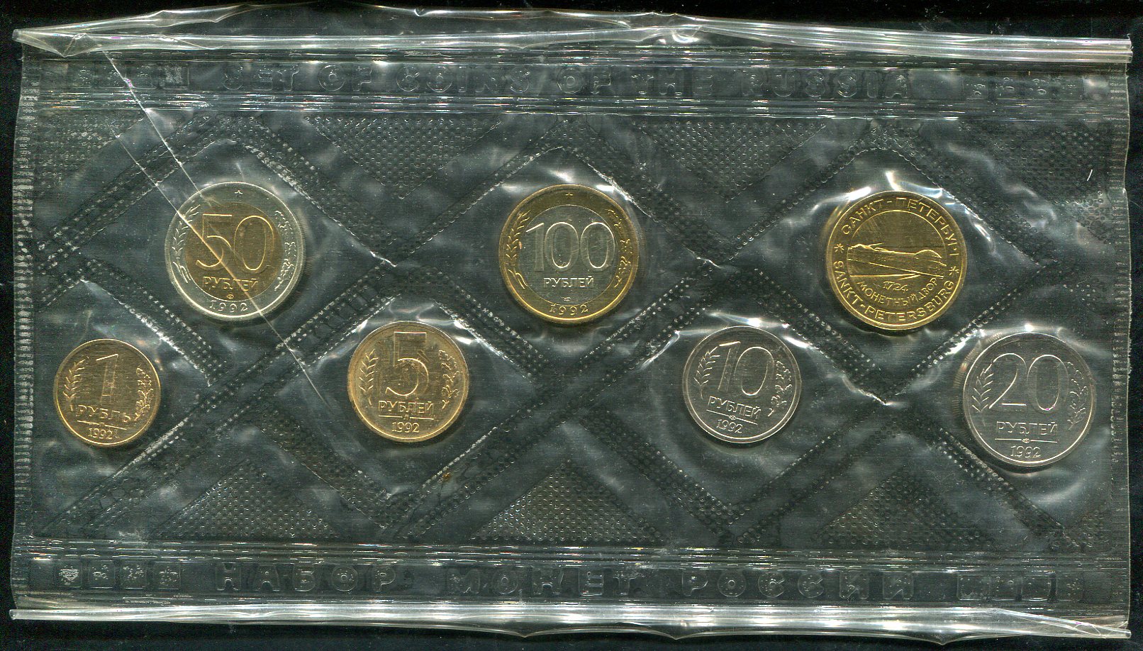 Годовой набор монет РФ 1992 (в мяг. запайке) ЛМД