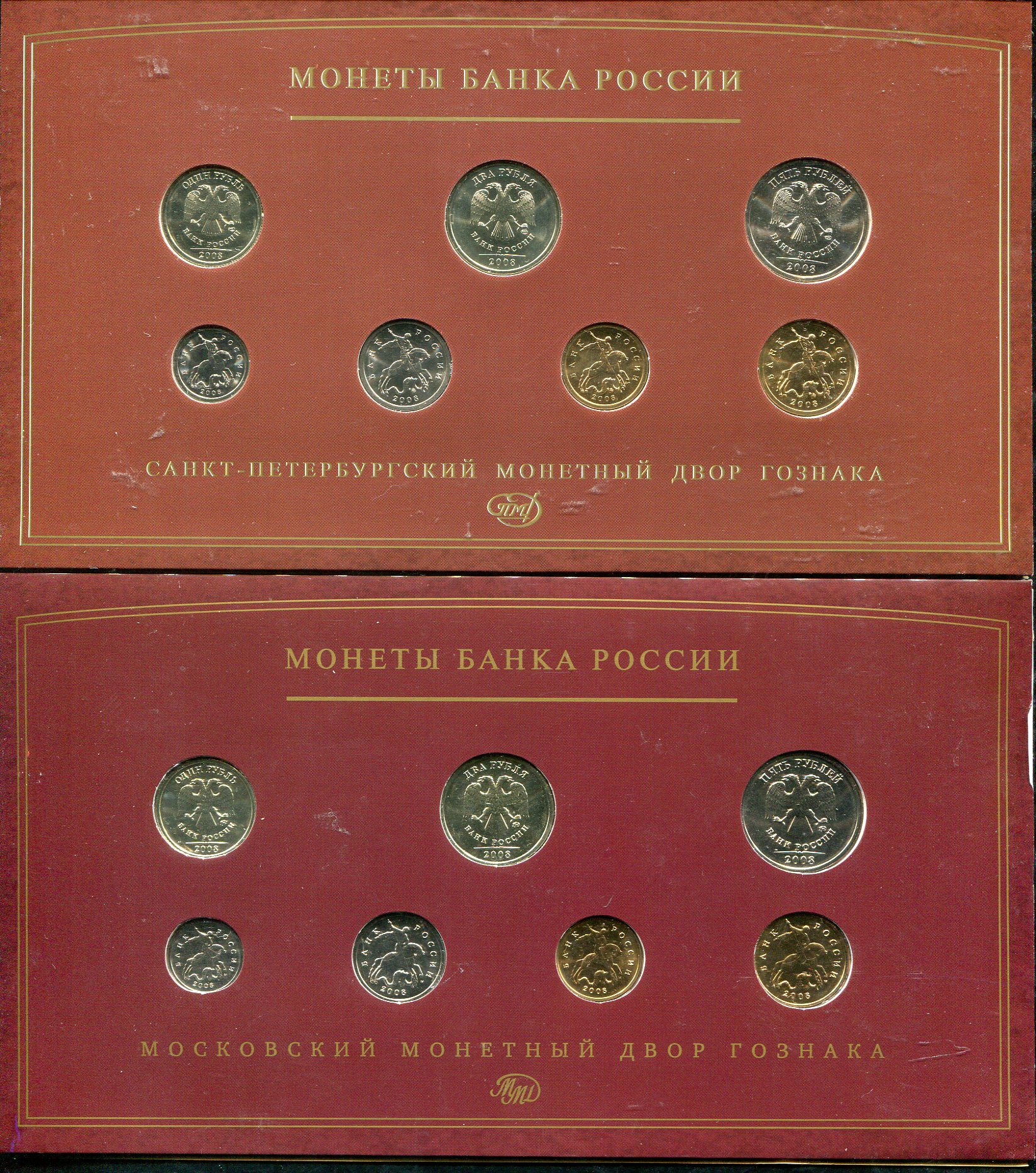 Набор из 2 годовых наборов монет Банка России 2008 (в п/у)