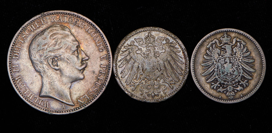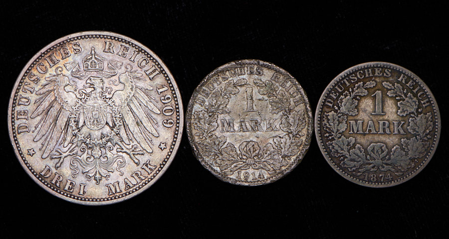 VG-XF. 3 марки 1909, 1 марка 1874, 1 марка 1914.
