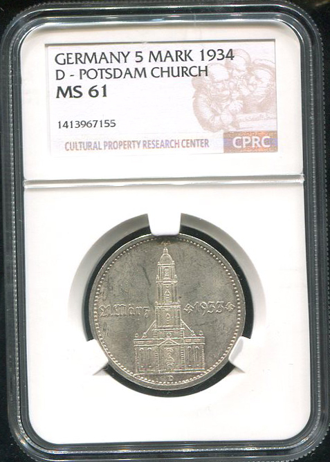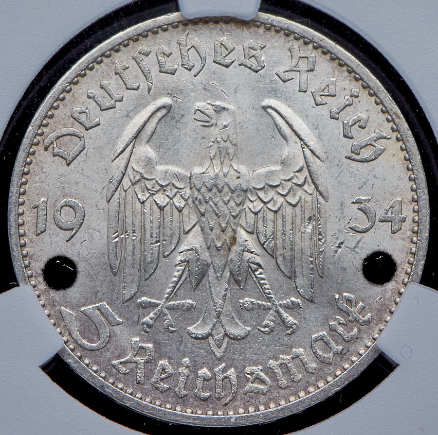 5 марок 1934 (Германия) (в слабе) D