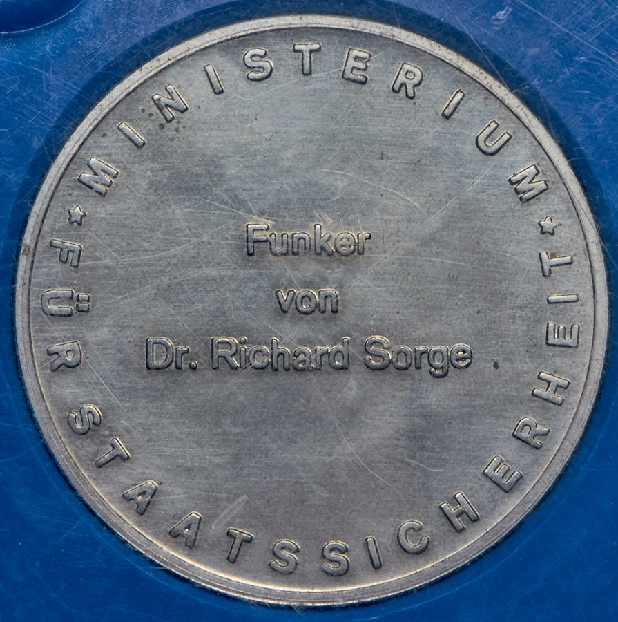Медаль в память Макса Клаузена - радист Рихарда Зорге. Германия (ГДР). Нейзильбер. Диаметр 33 мм. В оригинальной коробке.
