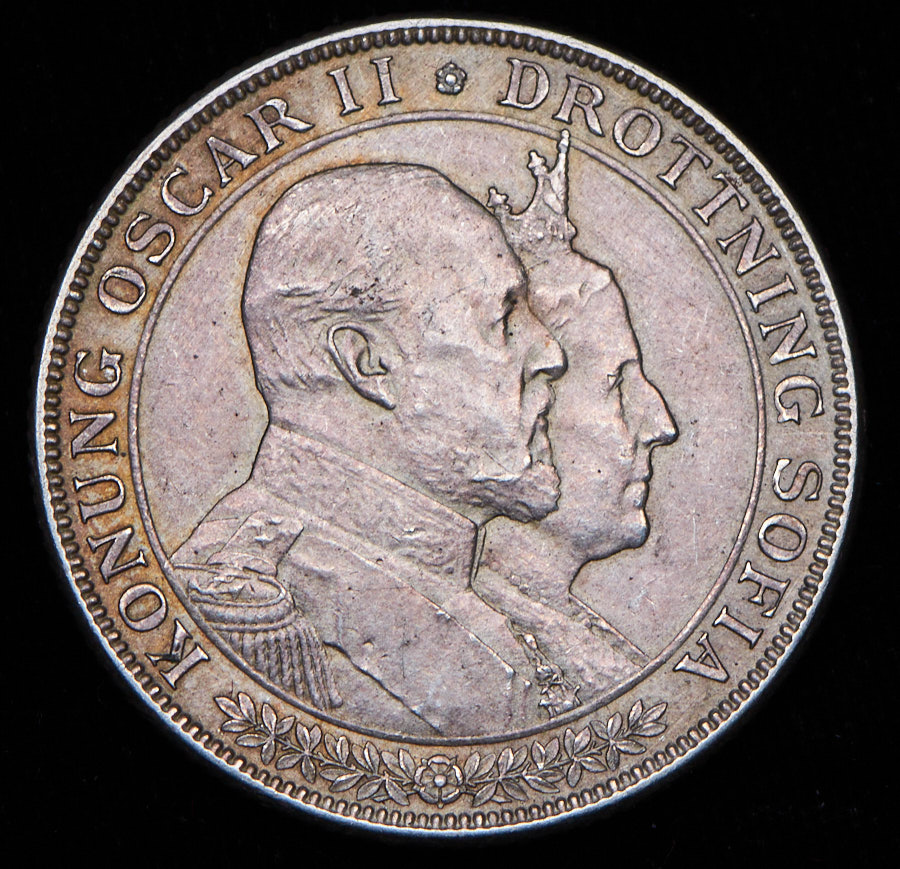 2 кроны 1907 "50 лет свадьбе Короля Оскара II и Леди Софии" (Швеция)