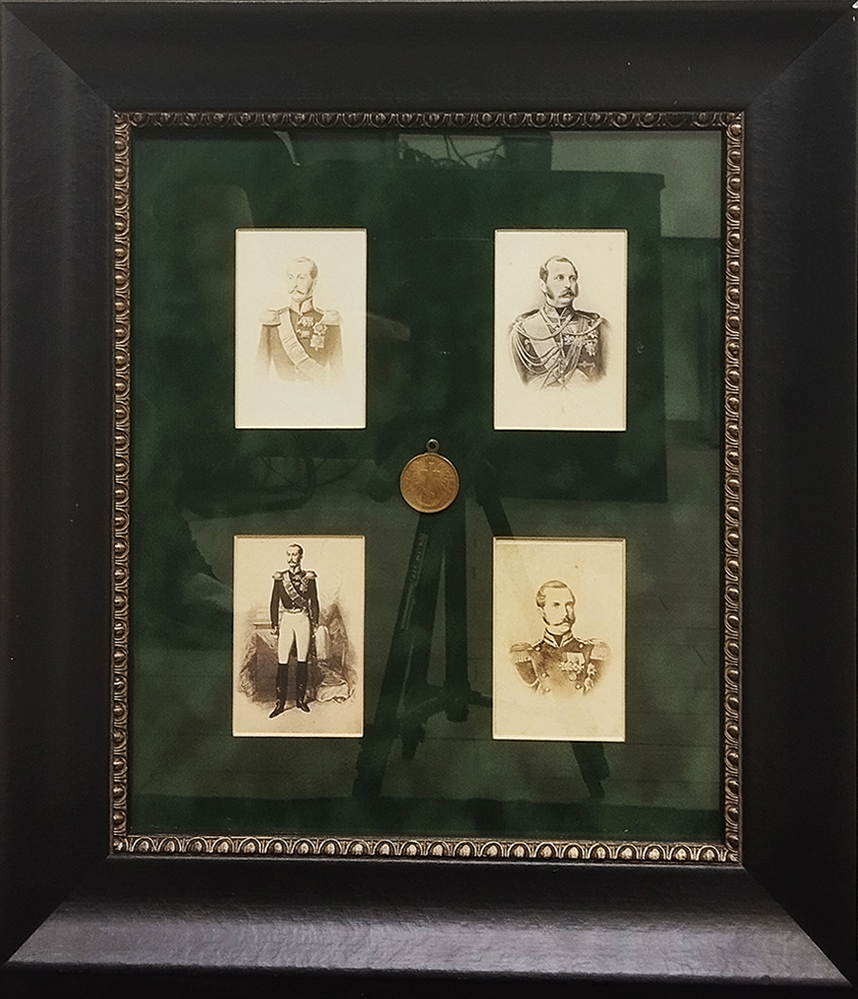 Багетное оформление с 4 дагеротипами императора. Александра II. Размер рамки 41 х 36,5 см.