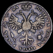 Кадашевский монетный двор. С пальмовой ветвью на груди. Над головой большая розетка. "росИI" в круговой легенде аверса.