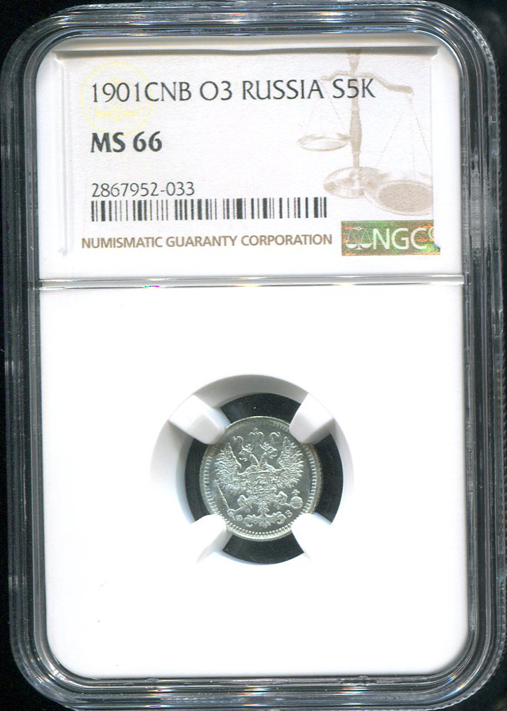 5 копеек 1901 (в слабе) СПБ-ФЗ
