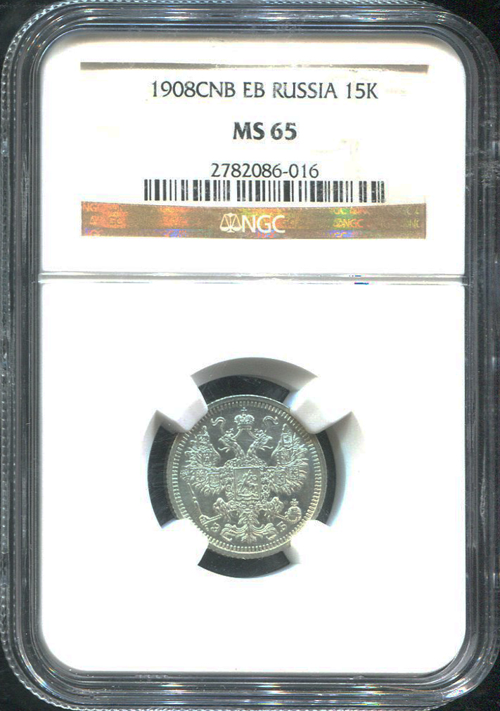 15 копеек 1908 (в слабе) СПБ-ЭБ
