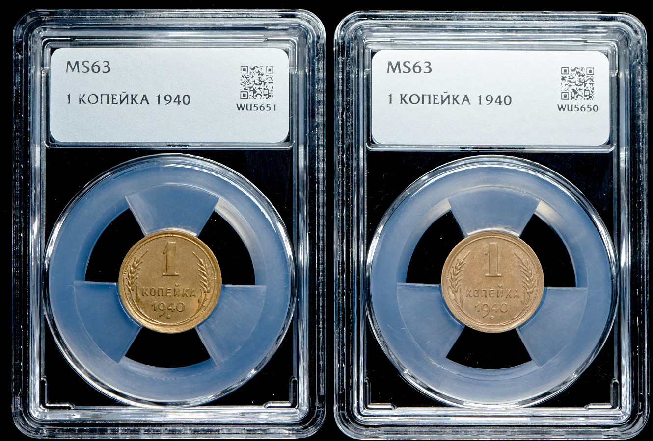 1 копейка 1940. В слабе ННР (малый формат). MS 63.